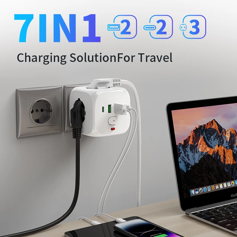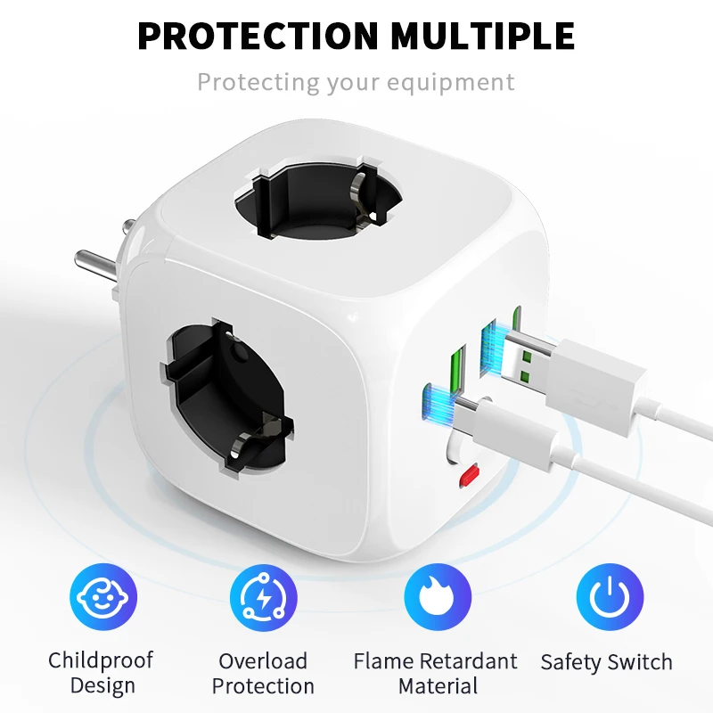 Дорожный сетевой фильтр розетка тройник разветвитель блок адаптер питания с розеткой портами USB куб