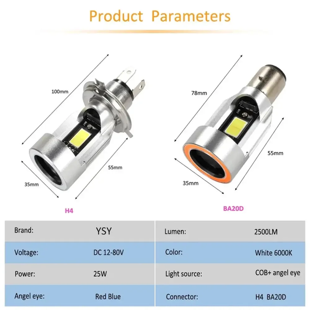 ⚡ Світлодіодна лампа H4 для мотоцикла з ангельськими очима - це сучасне рішення для тих, хто цінує безпеку та стиль. Мото лампа LED H4 забезпечує потужне освітлення дороги та робить ваш байк помітним у будь-яких умовах.